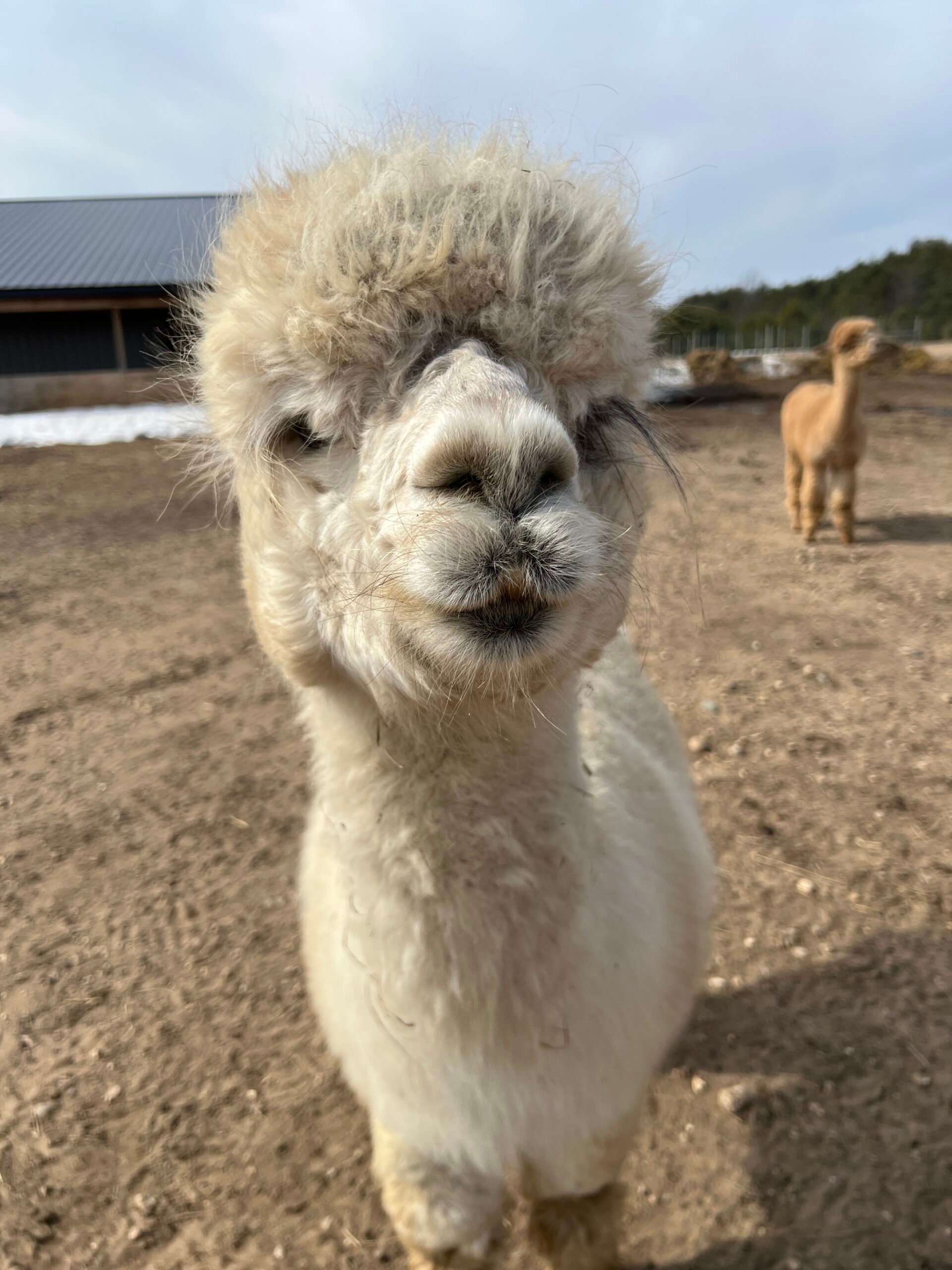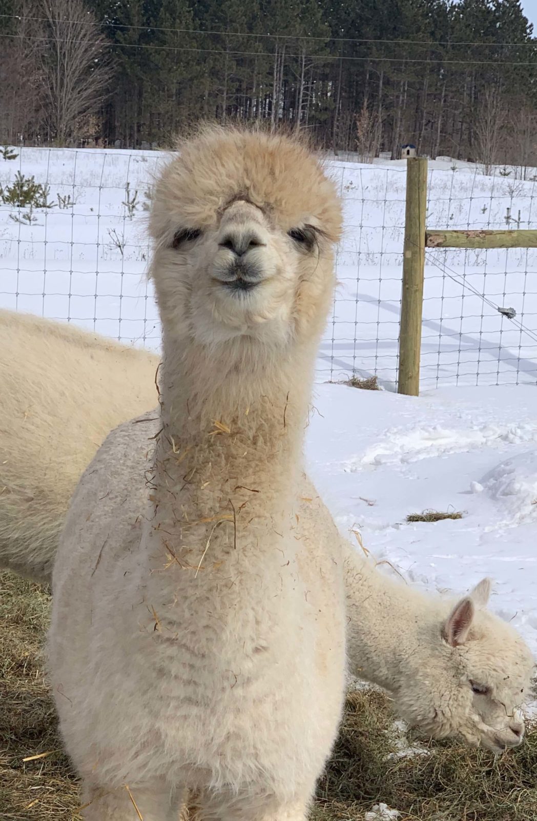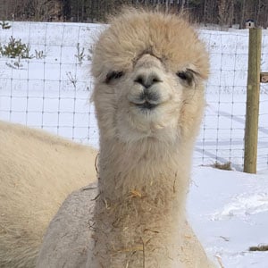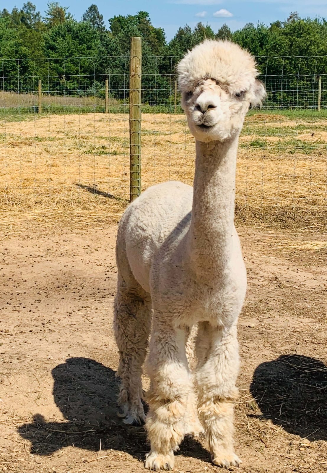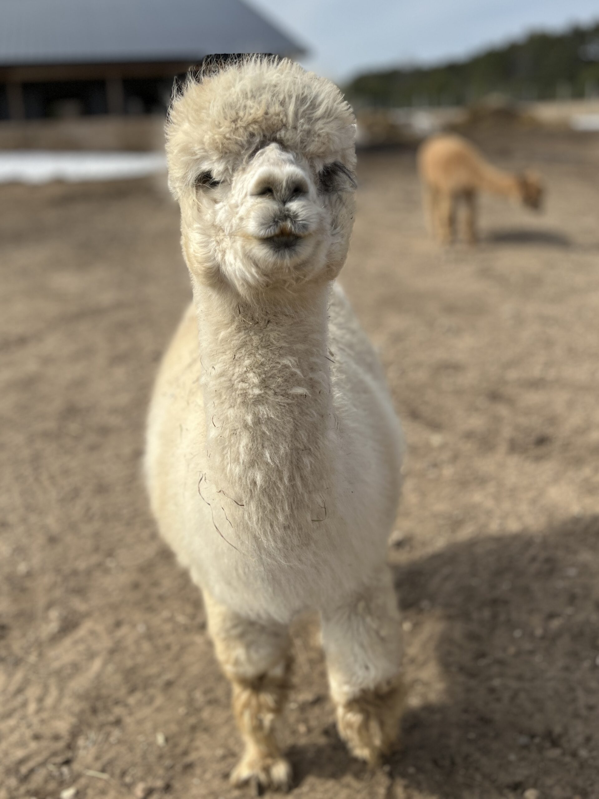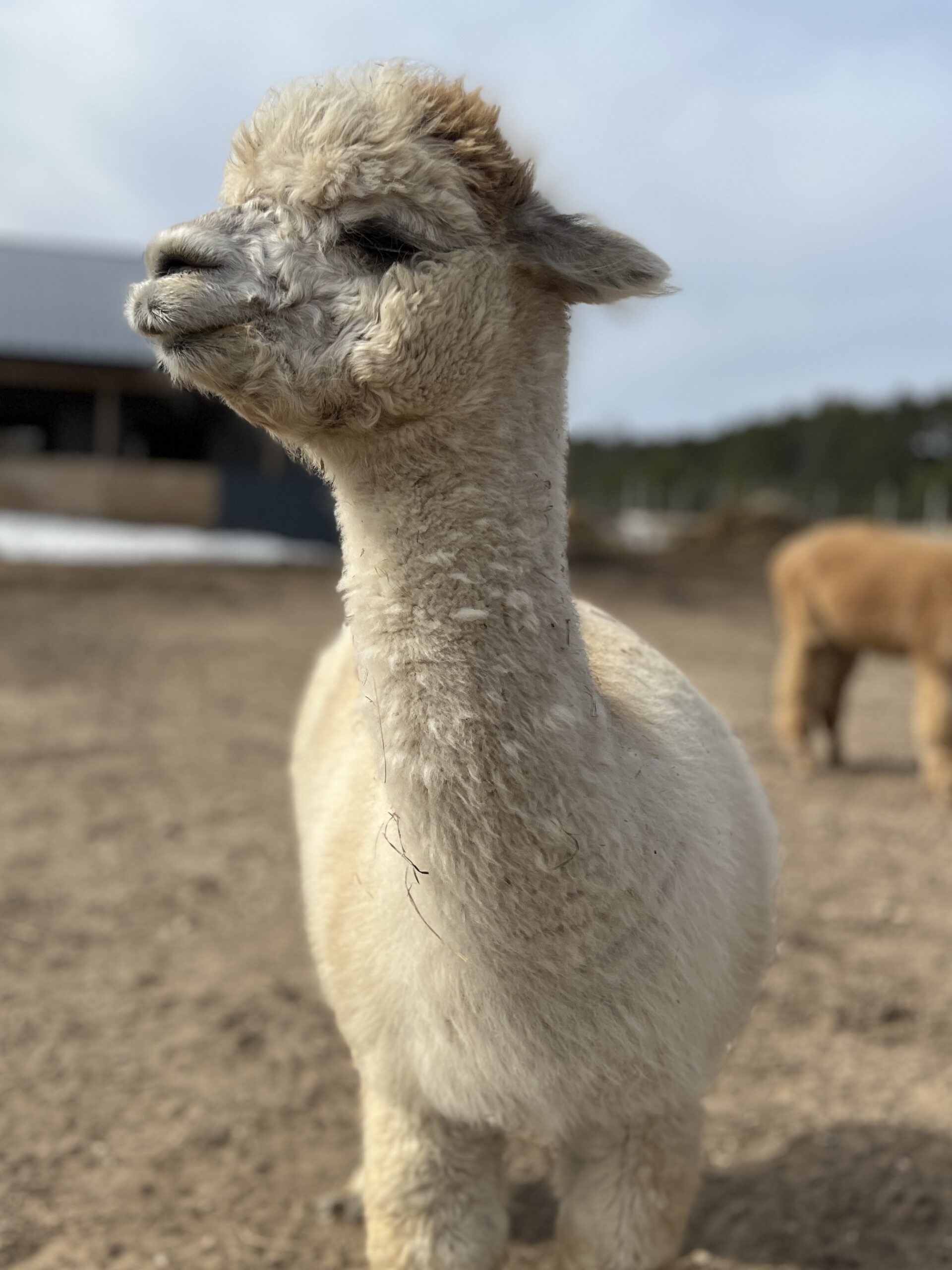 While she is a quiet alpaca, she is eager to jump into a tour and interact with visitors. She also is very eager to come and see her human momma when she arrives to the paddock to say hi. Over the years that we’ve had her, Faith has come to see our farm as home. She loves carrots and apples, knows to wait her turn for treats, and knows her favorite human will always make sure she gets those treats.