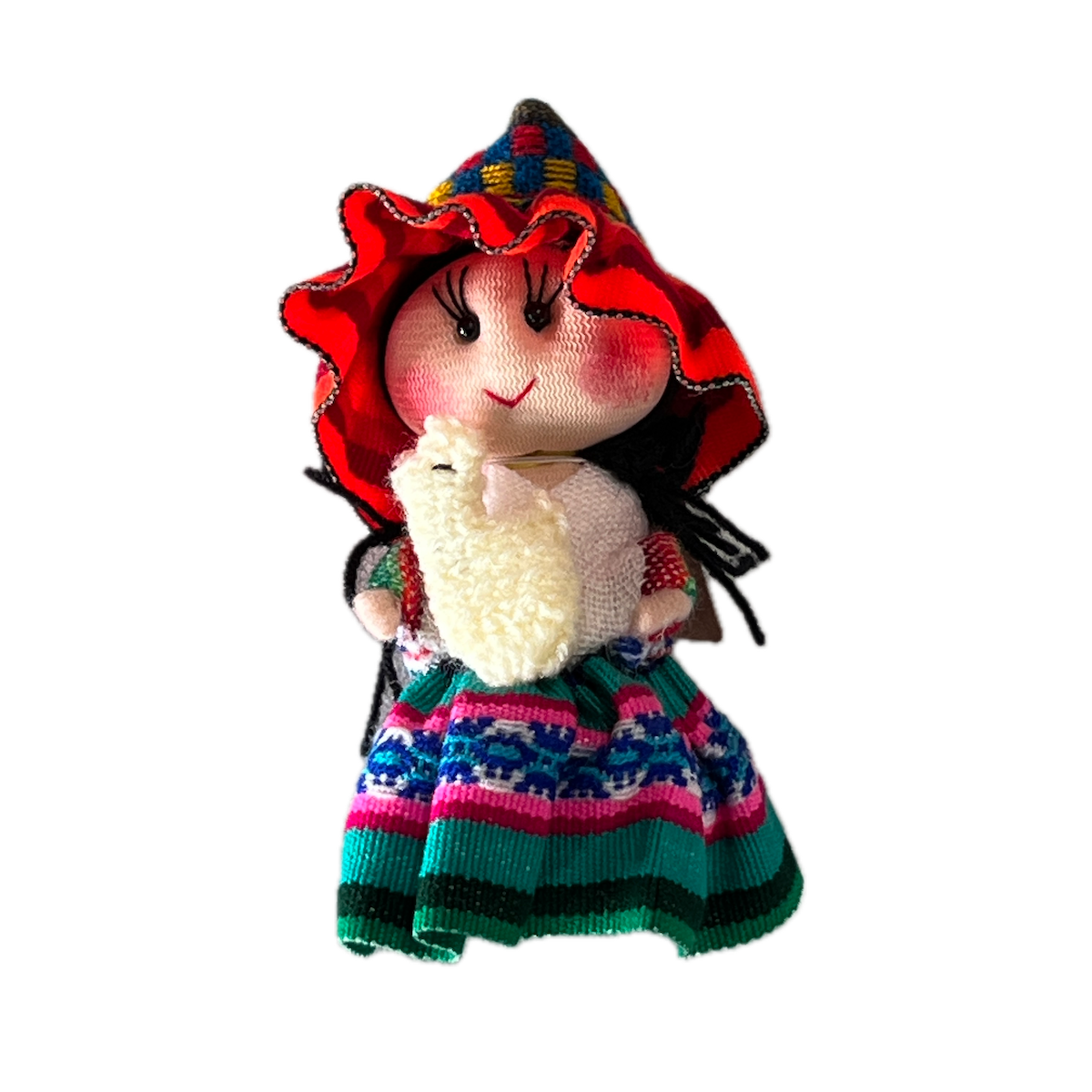 This cute doll is wearing traditional Peruvian clothing and holding a llama or potato sack. She stands 5″ tall. Dolls are sold in single units.