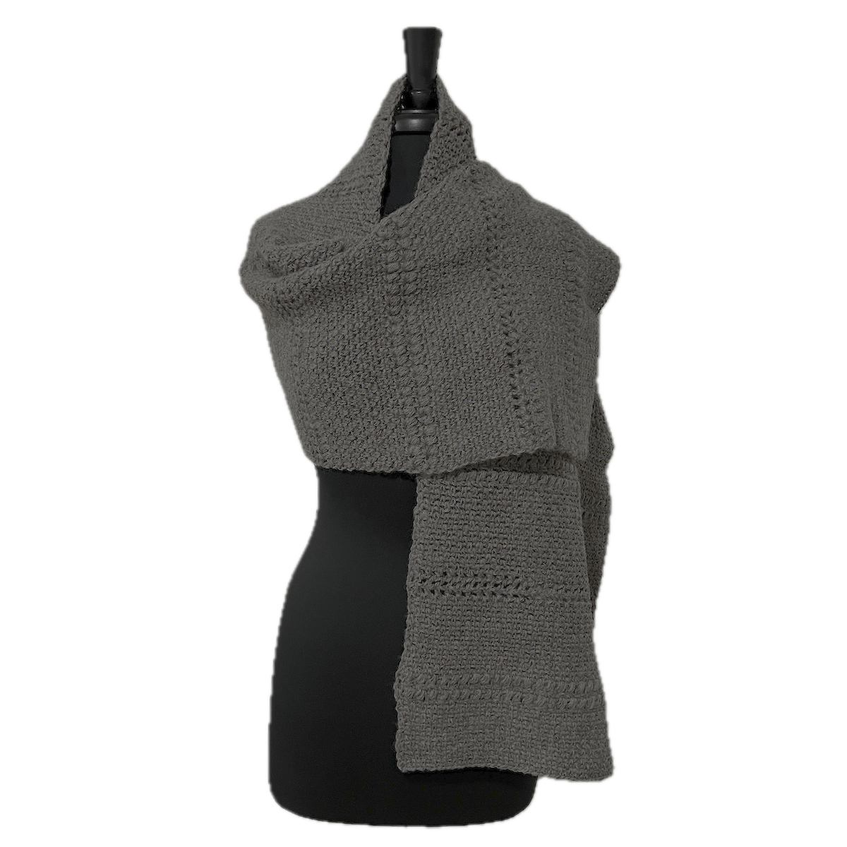 This handmade, silver grey alpaca shawl is made with locally grown fiber from Diva. Diva is one of our female breeders and show girls. She is part sweet, part sassy, with a whole lot of goofy mixed.